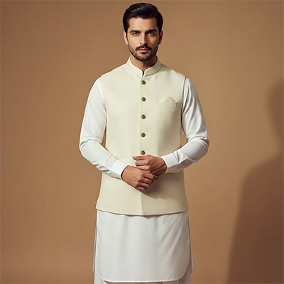Elevate your traditional or formal attire with our Creamy Waist Coat, designed with refined tailoring and premium-quality fabric. Perfect for pairing with thobes, kurtas or formal wear, this waist coat combines elegance, comfort and versatility — ideal for Jummah, Eid or special occasions.