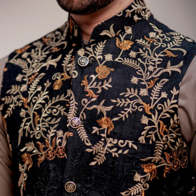 Elevate your traditional or formal attire with our Embroiderd Waist Coat – Black, designed with refined tailoring and premium-quality fabric. Perfect for pairing with thobes, kurtas or formal wear, this waist coat combines elegance, comfort and versatility — ideal for Jummah, Eid or special occasions.