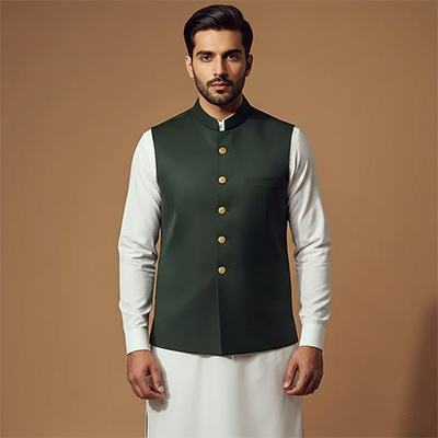 Elevate your traditional or formal attire with our Dark Green Waist Coat, designed with refined tailoring and premium-quality fabric. Perfect for pairing with thobes, kurtas or formal wear, this waist coat combines elegance, comfort and versatility — ideal for Jummah, Eid or special occasions.