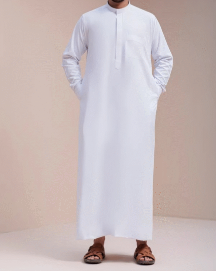 Experience the elegance of traditional Arab attire with our Plain Saudi Thobe — crafted from imported spun fabric and tailored to perfection with a Kuwaiti cut and Saudi-style collar. Designed for comfort, sophistication and durability, this thobe embodies simplicity and class for every occasion.